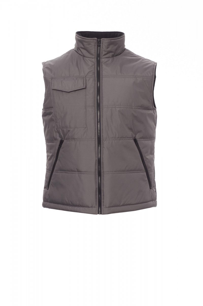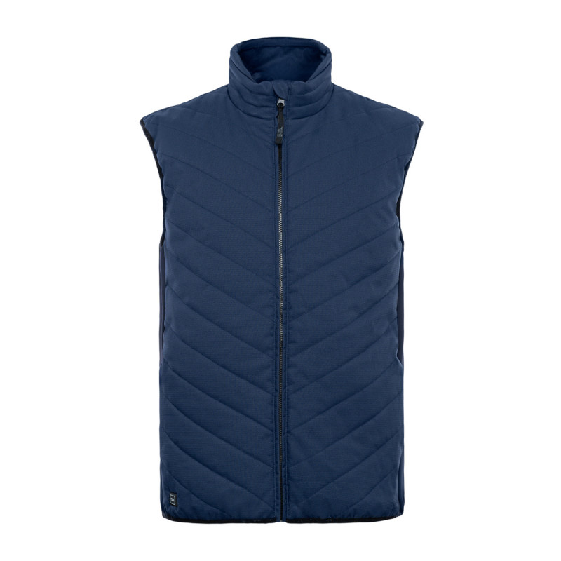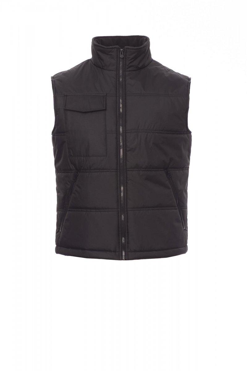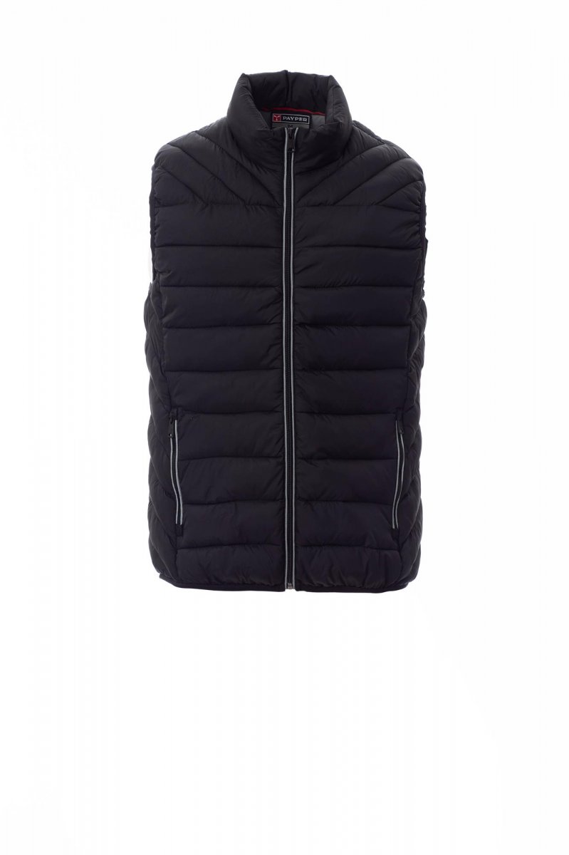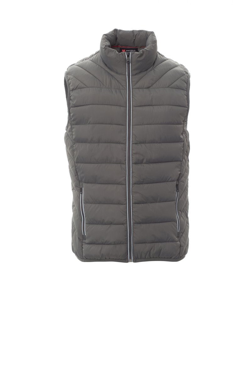 Gilet avec rembourrage en fibres libres (160g/m²), pour homme, fermeture par zip de 5 mm en plastique avec curseur en métal. Fin liseré à la taille. Deux poches extérieures avec zip. Passepoil rétroréfléchissant sur zip. Deux poches intérieures.