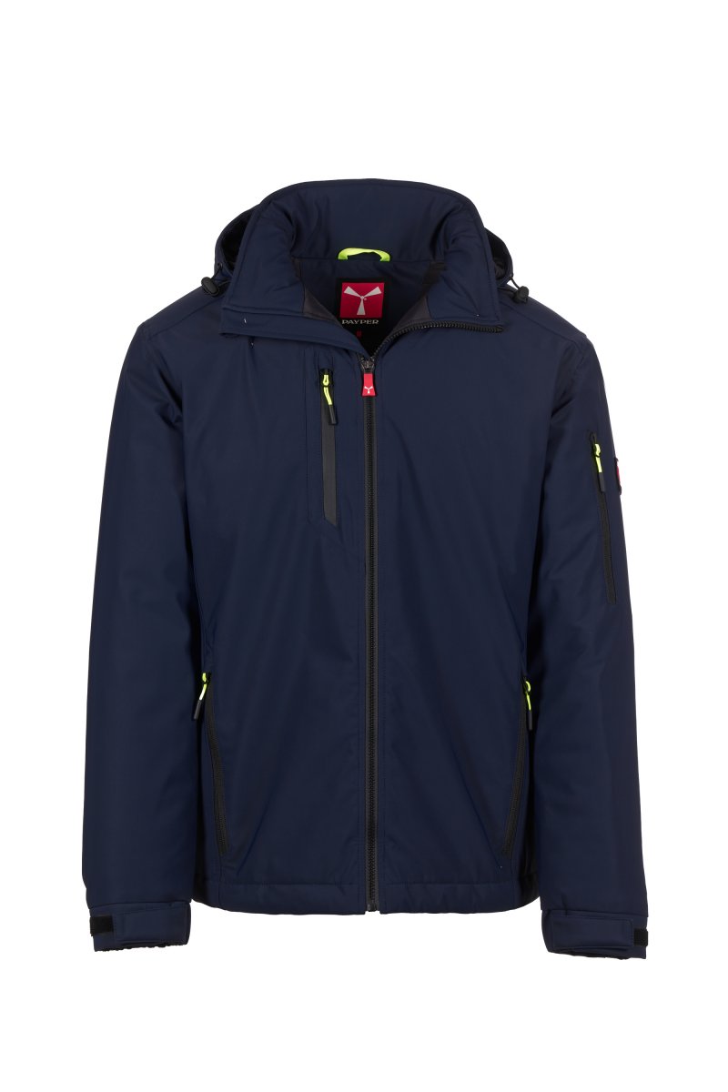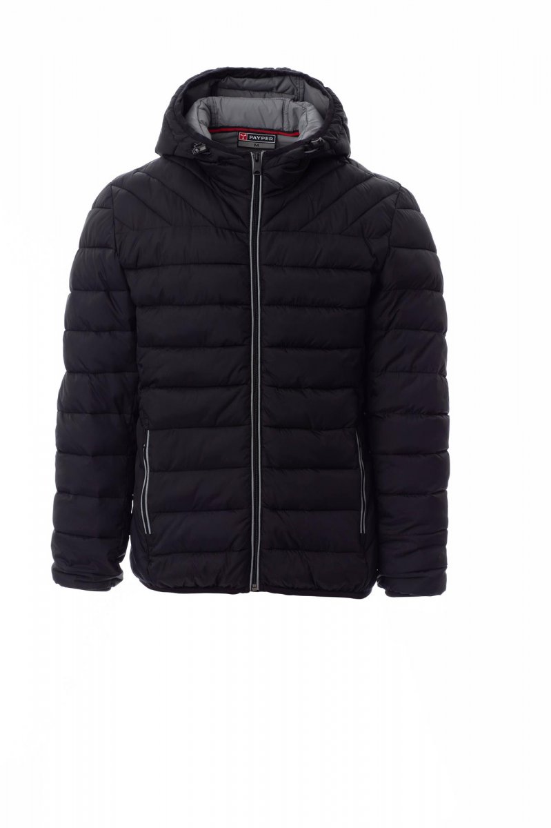 Doudoune avec rembourrage en fibres libres (160g/m²), pour homme, fermeture par zip de 5 mm en plastique avec curseur en métal. Capuche réglable avec stoppeur. Poignets et taille avec fin liseré. Deux poches extérieures avec zip. Passepoil rétroréfléchissant sur zip. Deux poches intérieures.