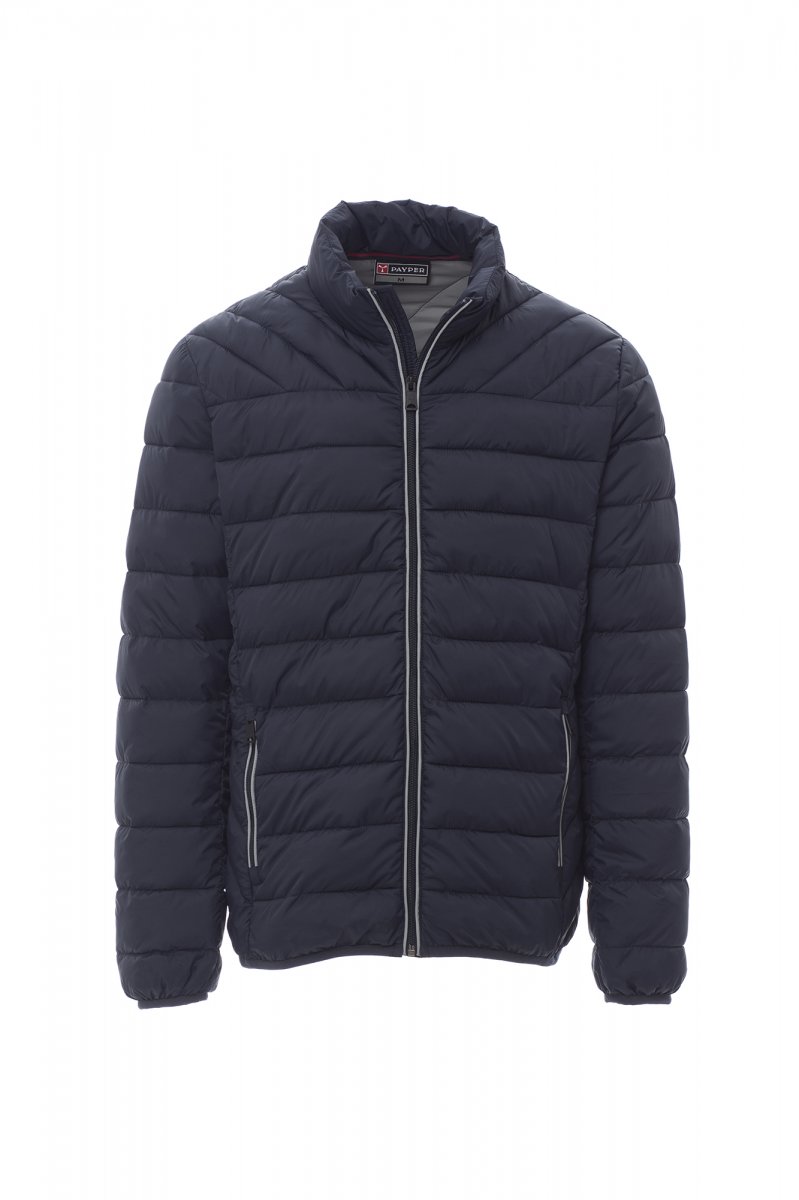 Doudoune avec rembourrage en fibres libres (160g/m²), pour homme, fermeture par zip de 5 mm en plastique avec curseur en métal. Poignets et taille avec fin liseré. Deux poches extérieures avec zip. Passepoil rétroréfléchissant sur zip. Deux poches intérieures.