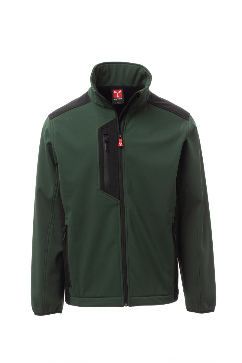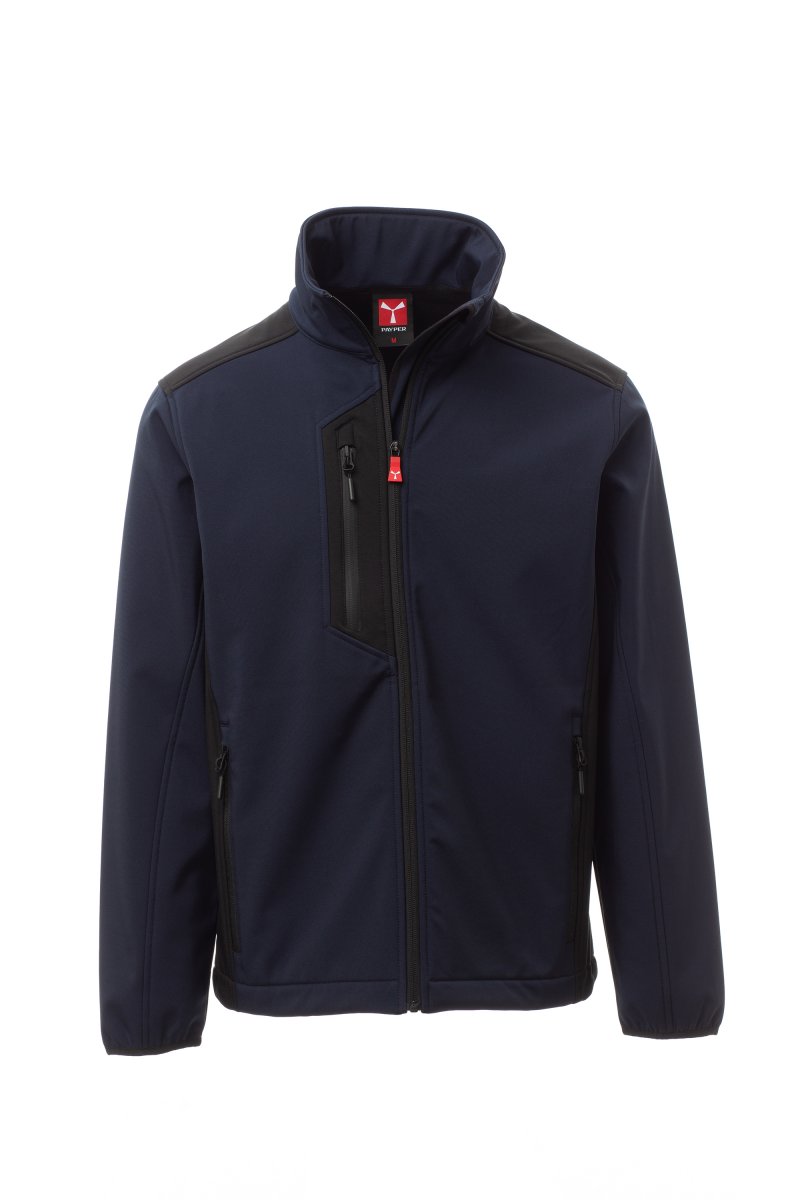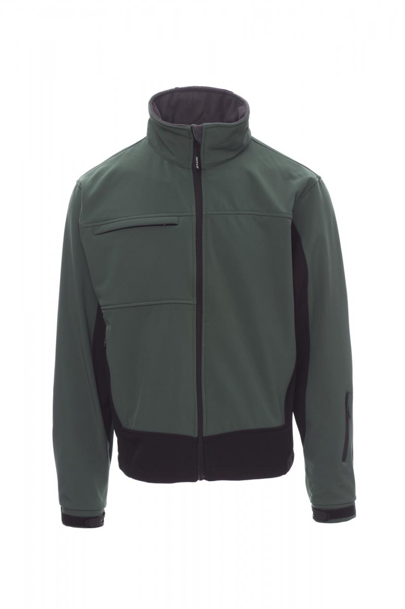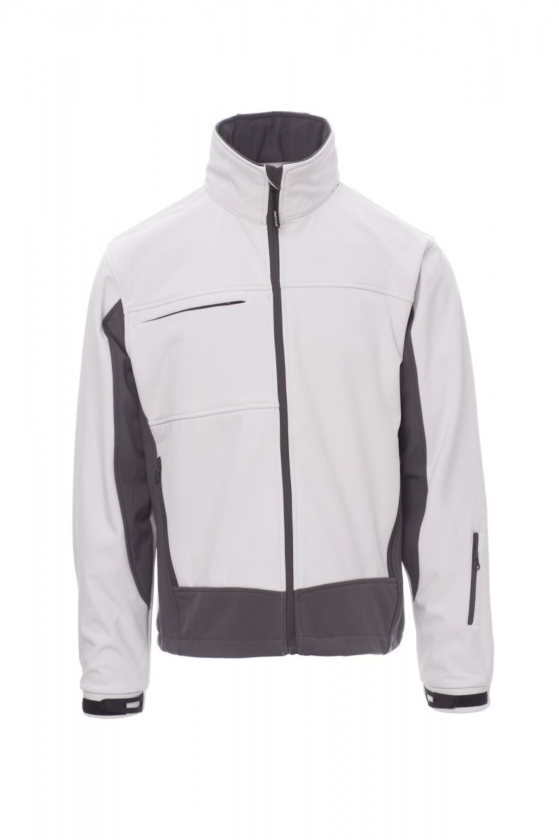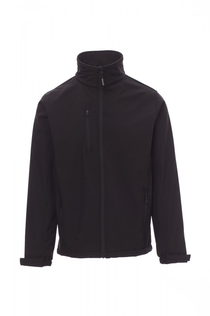 Soft-shell 3 couches, pour homme, fermeture par zip SBS avec ruban. Poignets élastiqués, réglables par fermeture autoagrippante. Deux poches extérieures avec zip.
