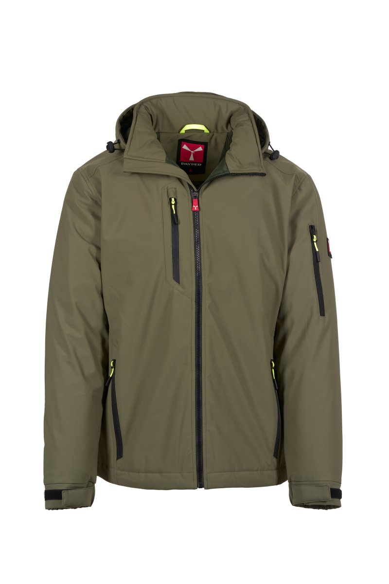 Soft-shell 3 couches, rembourrage chaud (160g/m²), pour homme, fermeture par zip avec curseur en métal à verrouillage semi-automatique et tirette personnalisée. Capuche fixe avec coulisse réglable. Poignets élastiqués, réglables par fermeture autoagrippante. Deux poches latérales et une poche poitrine, fermées par zip. Tirettes fluorescentes. Deux poches intérieures : une profilée avec zip et une porte-tablette avec fermeture autoagrippante. Bas réglable avec stoppeurs personnalisés.