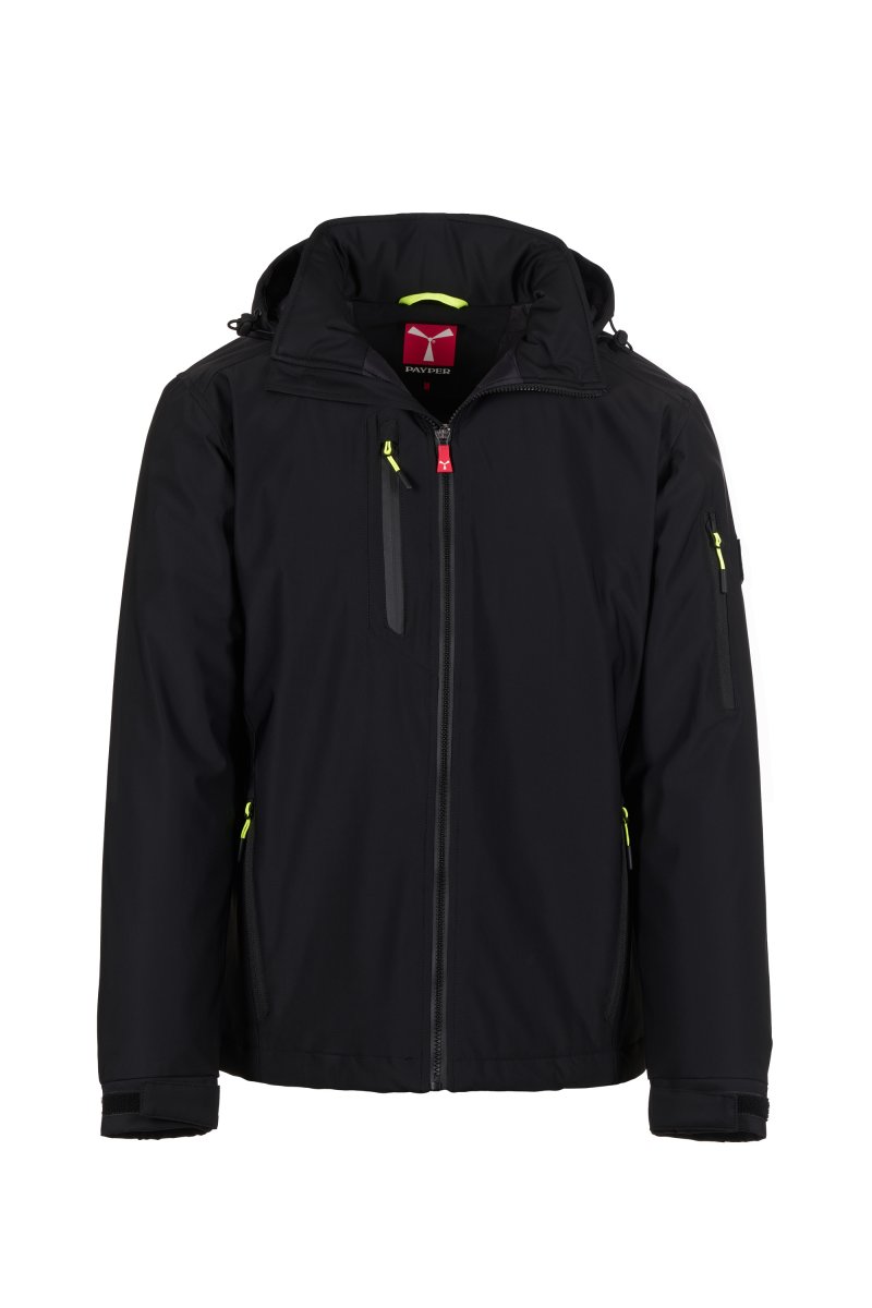 Soft-shell 3 couches, bicolore. Fermeture par zip SBS avec ruban et capuche repliable dans le col. Poignets réglables avec serre-poignets caoutchoutés et fermeture autoagrippante. Deux poches latérales avec zip, une poche poitrine avec porte-badge escamotable, une poche Skipass sur le bras, coulisse à la taille.