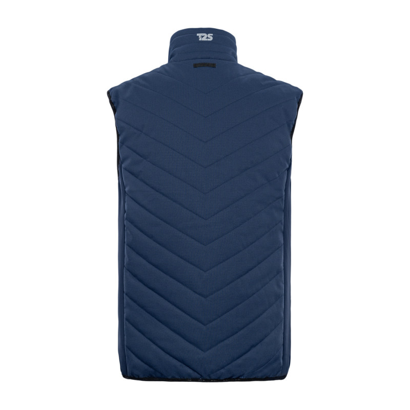 Gilet matelassé avec arrière profilé et rembourrage surpiqué, finition avec doublure haute densité, intérieur du col en polaire. Deux grandes poches zippées, poche porte-téléphone sur la poitrine et poche intérieure.
